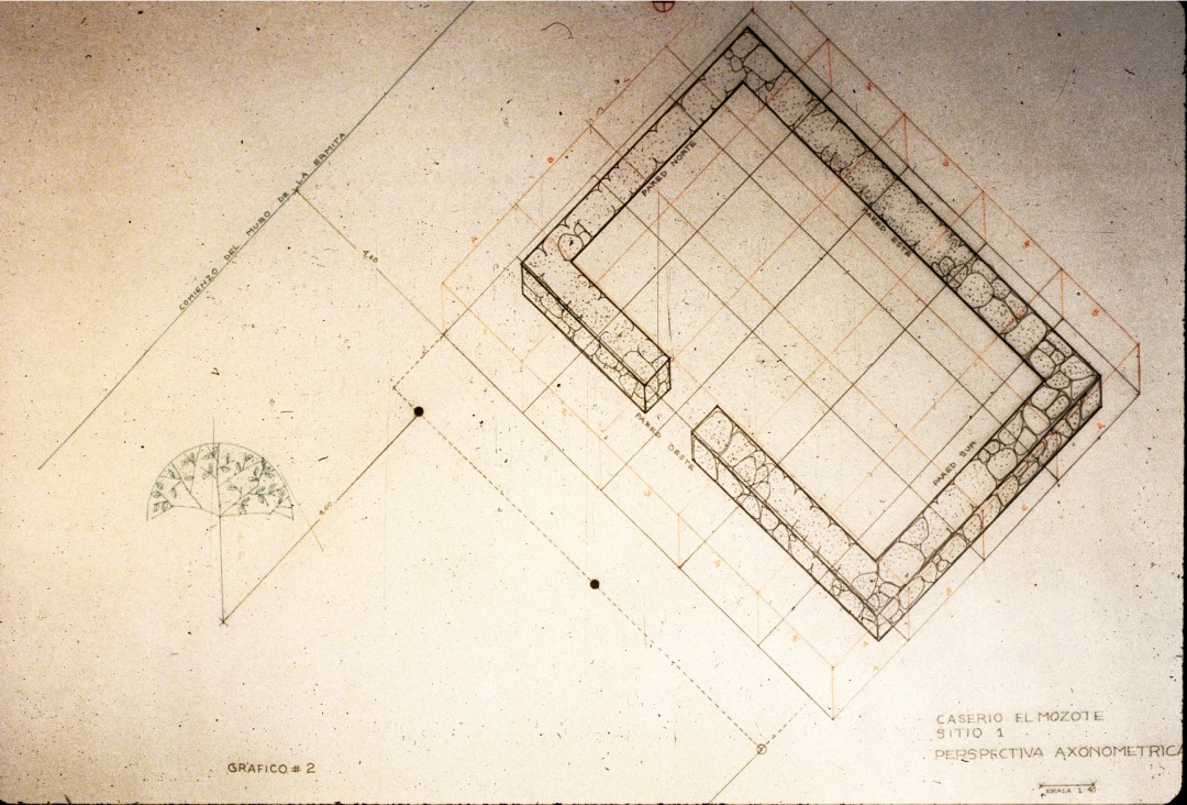 This drawing was done by David Morales, a lawyer from Tutela Legal, using information gathered from various interviews conducted with survivors.Site #1: The First Site Excavated in the Hamlet of El Mozote, 1992