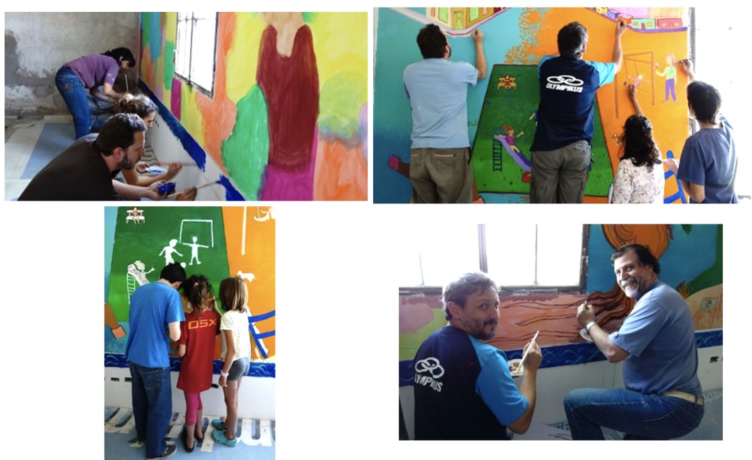 This new section of the mural included the challenge of incorporating in the mural the windows that were part of the wall.November Family Artists