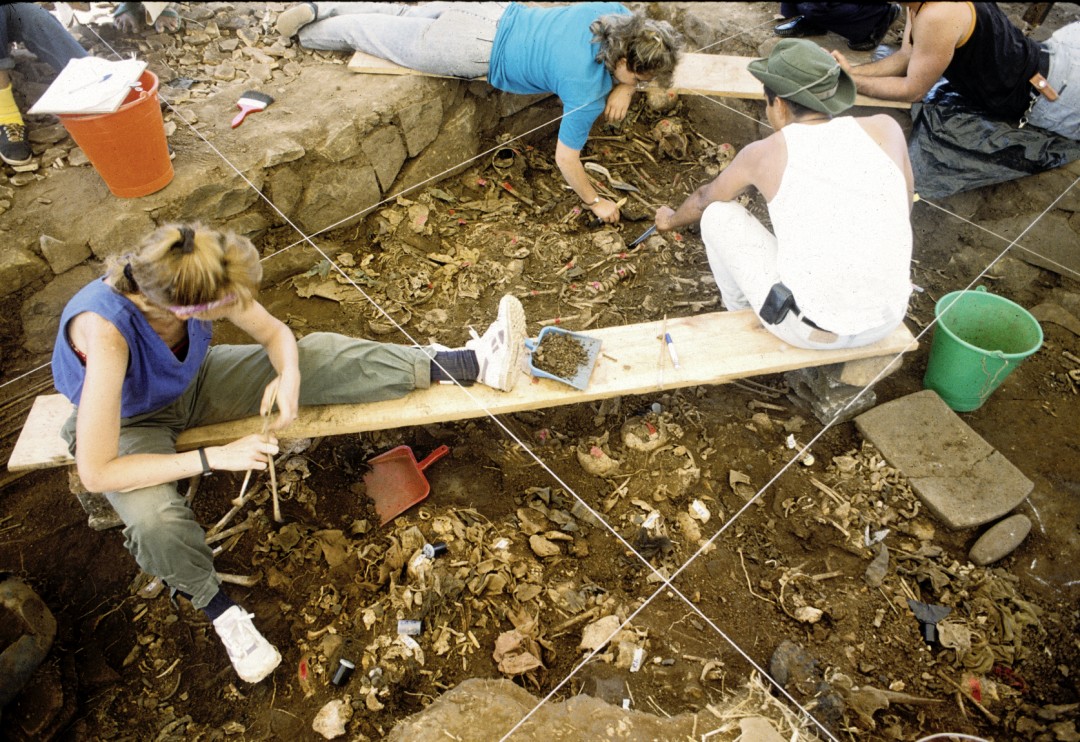 The ground was carefully weeded and when the soil was ready, the sediment was gently removed until the first bones and other evidence were reached.The Findings, 1992