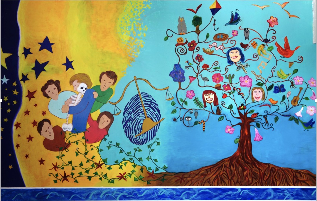 The family artists designed, painted, and finished the mural collaboratively and communally.Our Small Bones