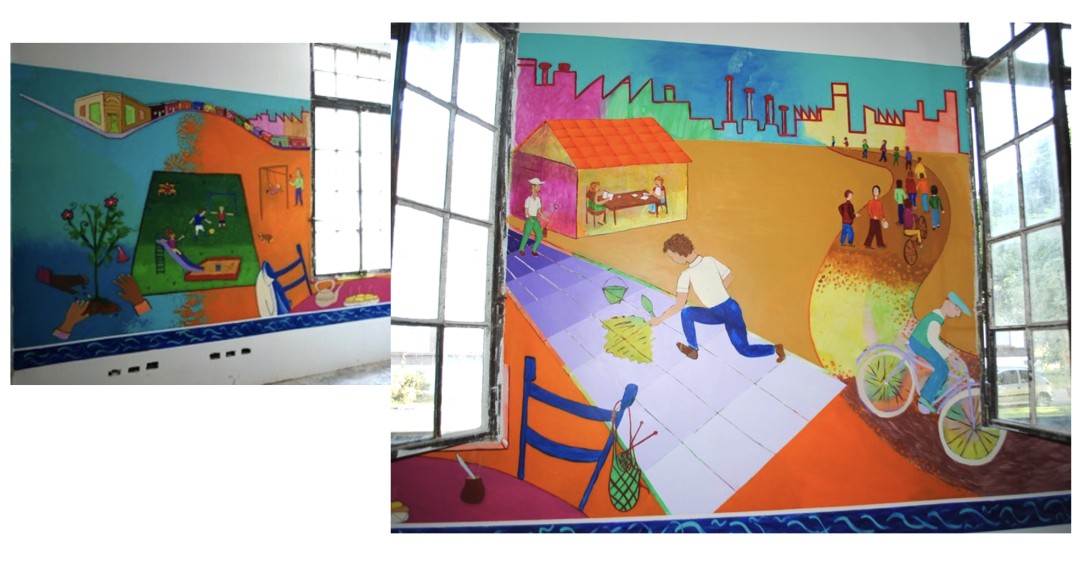 In 2009, Claudia and Walls of Hope facilitated two collaborative and community-based mural projects in Cocorná, Antioquia, with members of AVVIC (Asociación de Víctimas de Violencia de Cocorná / The Cocorná Assocation of Victims of Violence), survivors of the effects of landmines, and victims of forced exiles and political violence during the armed conflict in Colombia.