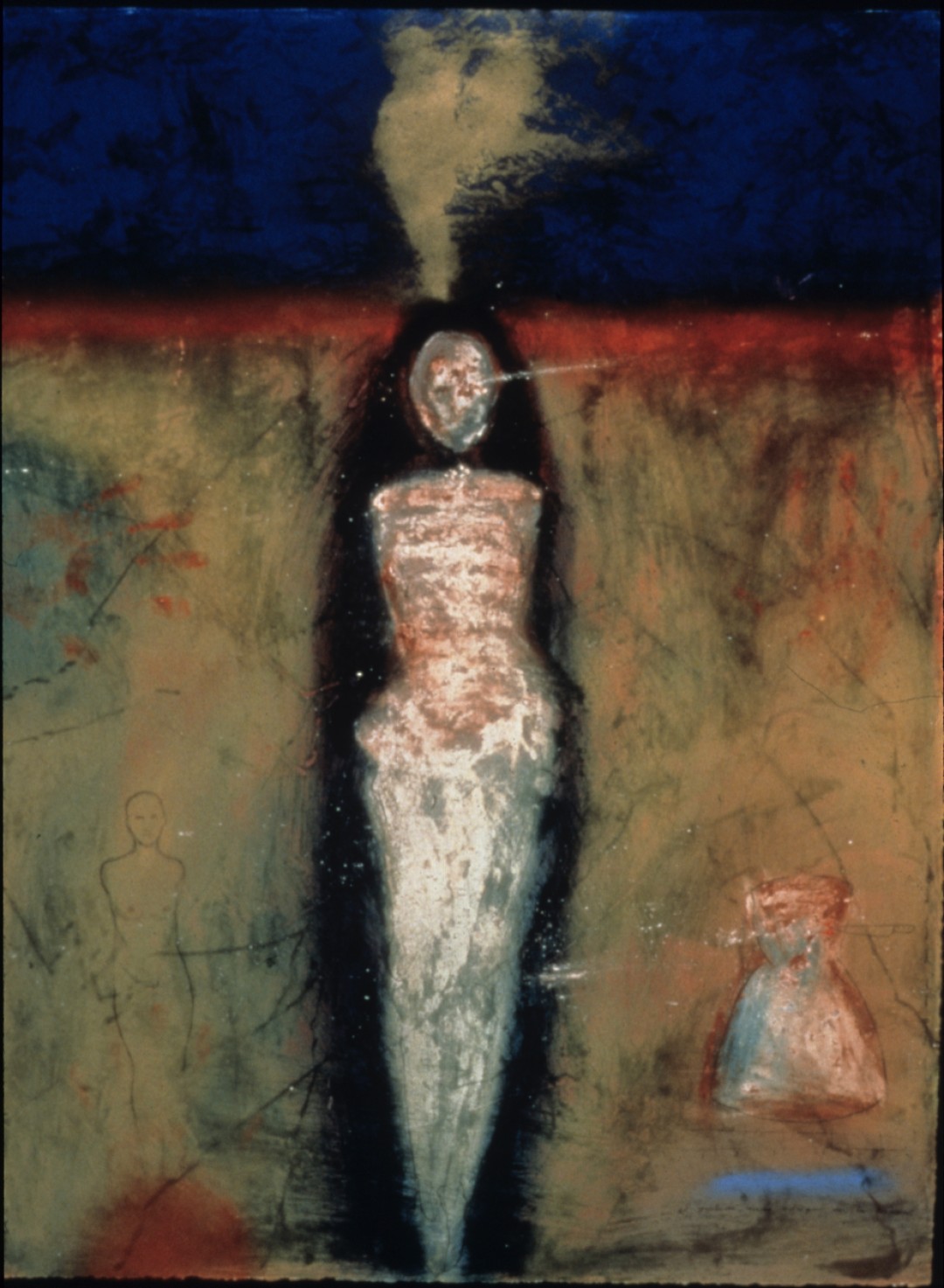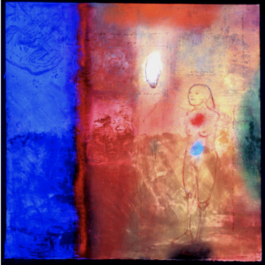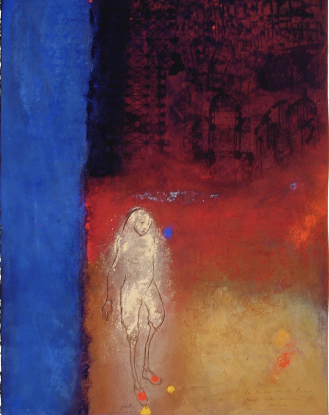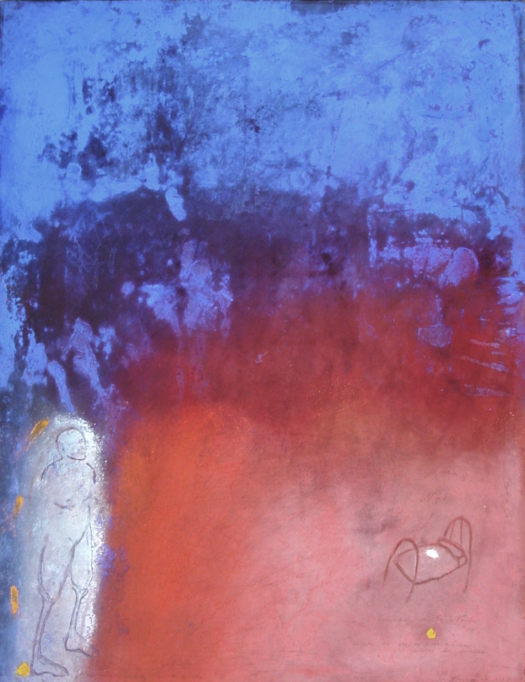 In the fresco on paper technique, pigments are applied directly to the surface. The pigments become the wall. (1995, 30” x 42”)Stains Leave Marks on the Vessel of the Soul