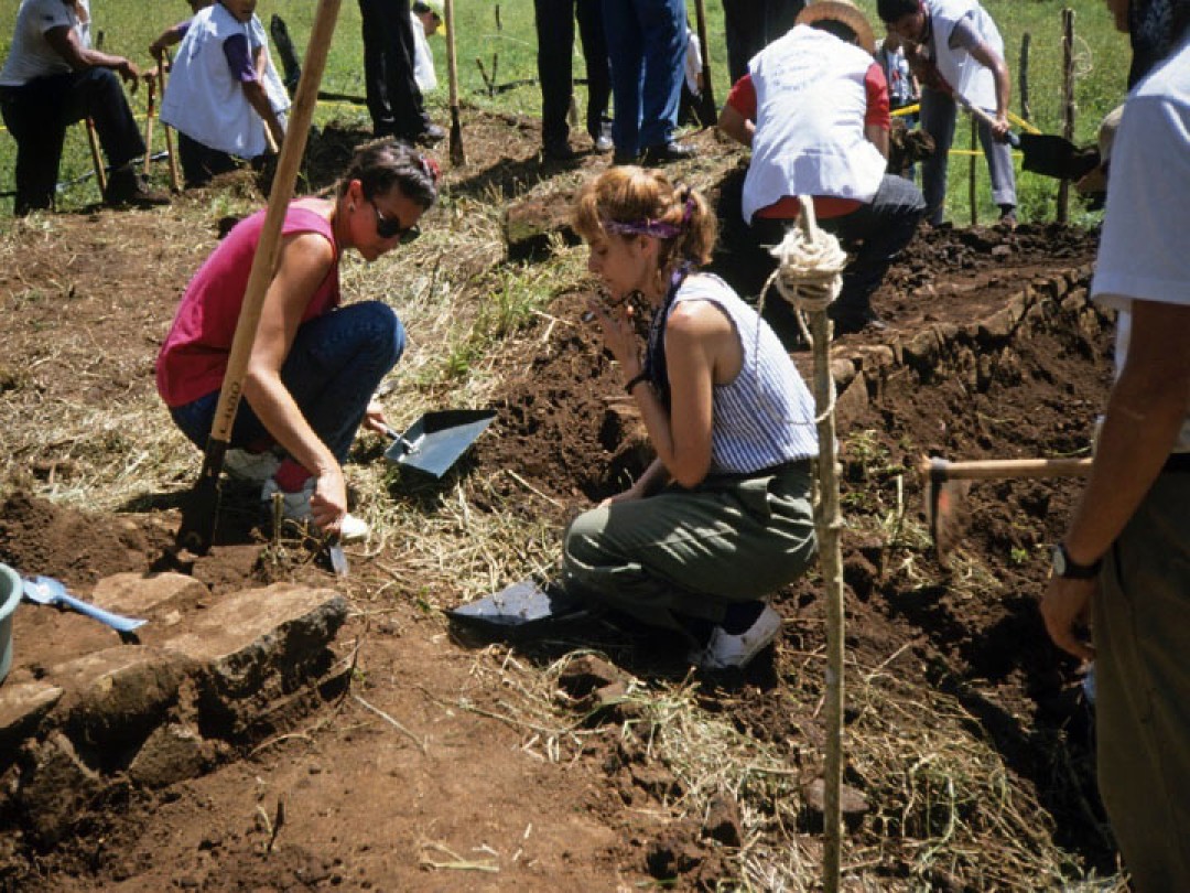 Identification of the base wall of the original “Convent” building, where the massacre took place.Clearing the Plot, 1992