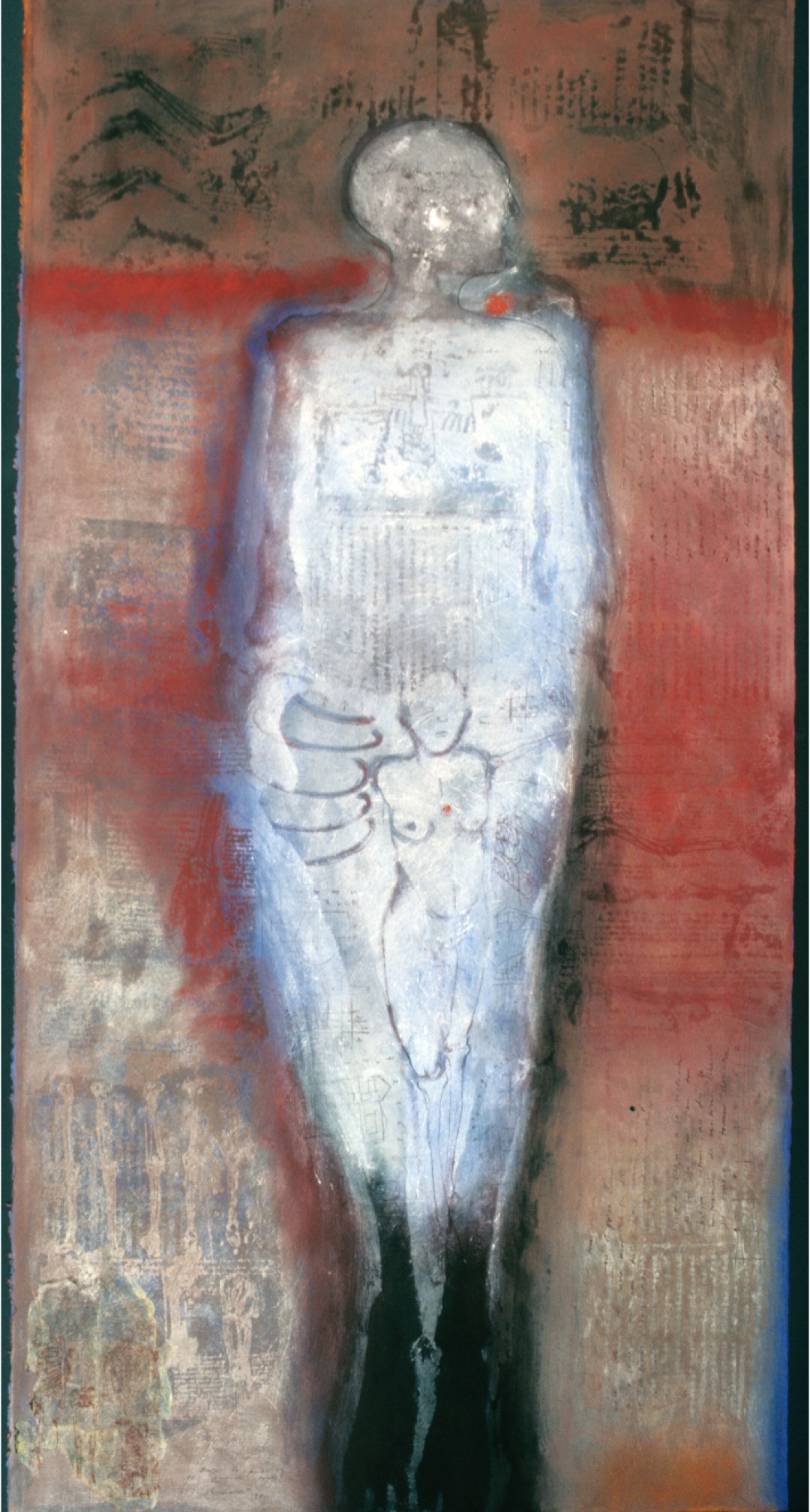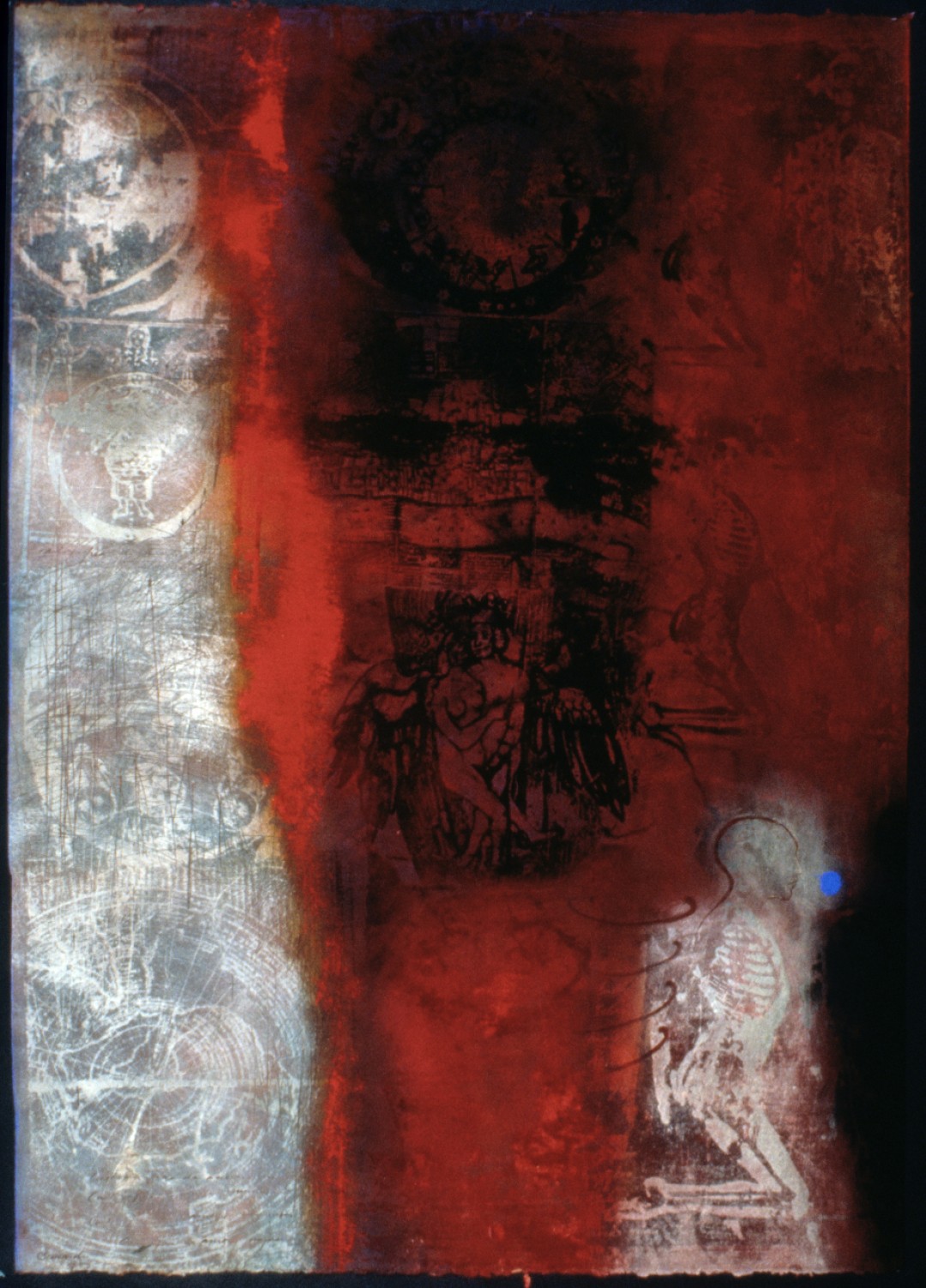In the fresco on paper technique, the pigment becomes the paper through pressure being applied by an engraving press. (1996, 30” x 42”)The Weight of Evil